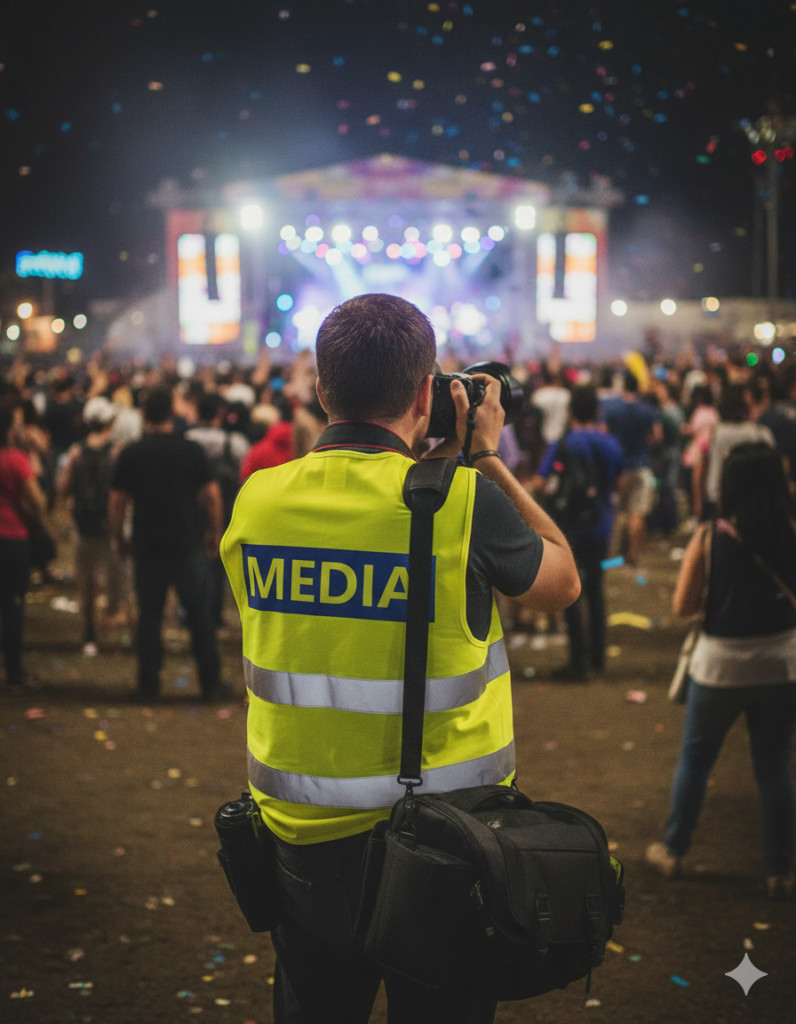 Ez a láthatósági mellény alapvető munkavédelmi és azonosítási eszköz mindenki számára, aki rendezvényhelyszíneken, forgalmas területeken vagy építkezéseken végez médiafeladatokat.