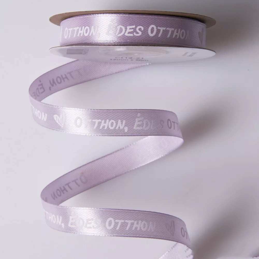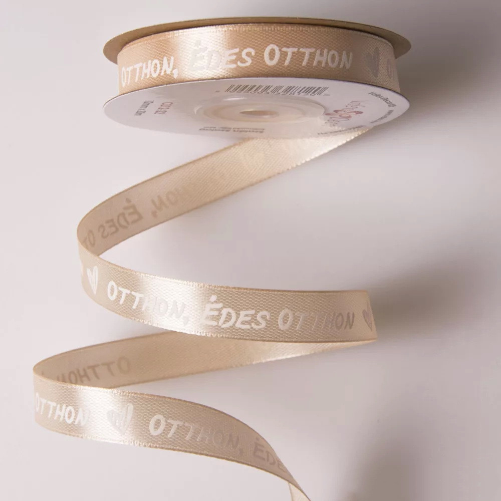 Szatén szalag Édes Otthon felirattal, több színben.