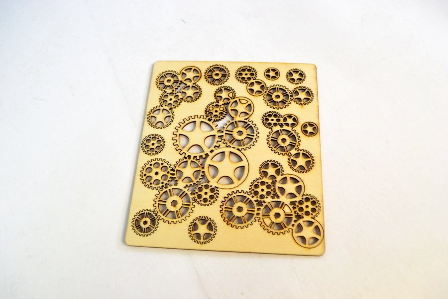 • Megnevezés: Fa lap lézervágott fogaskerekek mintával