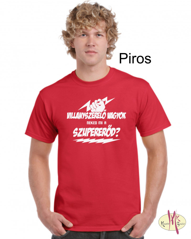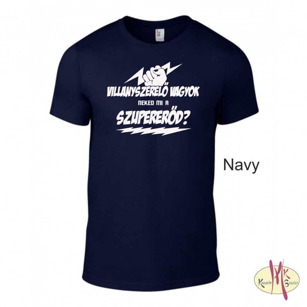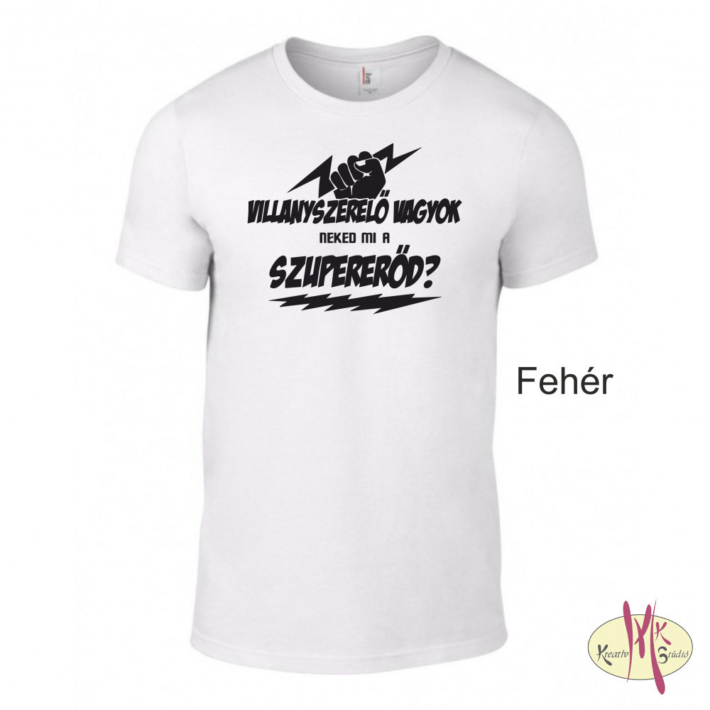 Kereknyakú Póló - Villanyszerelő vagyok neked mi a szupererőd?
