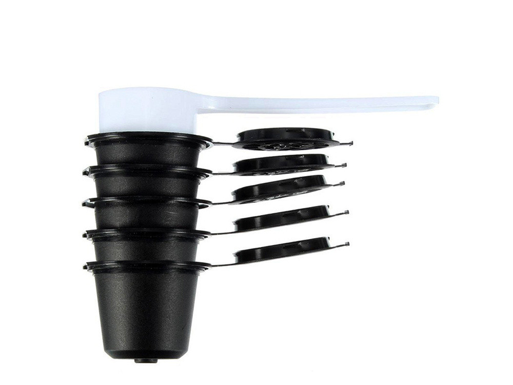 A készlet tartalmaz egy adagoló - mérőpoharat, amely lehetővé teszi a megfelelő mennyiségű termék pontos mérését. Miután beleöntötte a kávét, finoman nyomja le, és zárja le a fedelet. Ezután helyezze be a Nespresso típusú kávéfőzőbe. A kapszula tökéletesen illeszkedik minden Nespresso modellhez. A kávé elkészítése után mossa ki a kapszulát folyó víz alatt, és a maradékot a készletben található kefével tisztítsa meg.