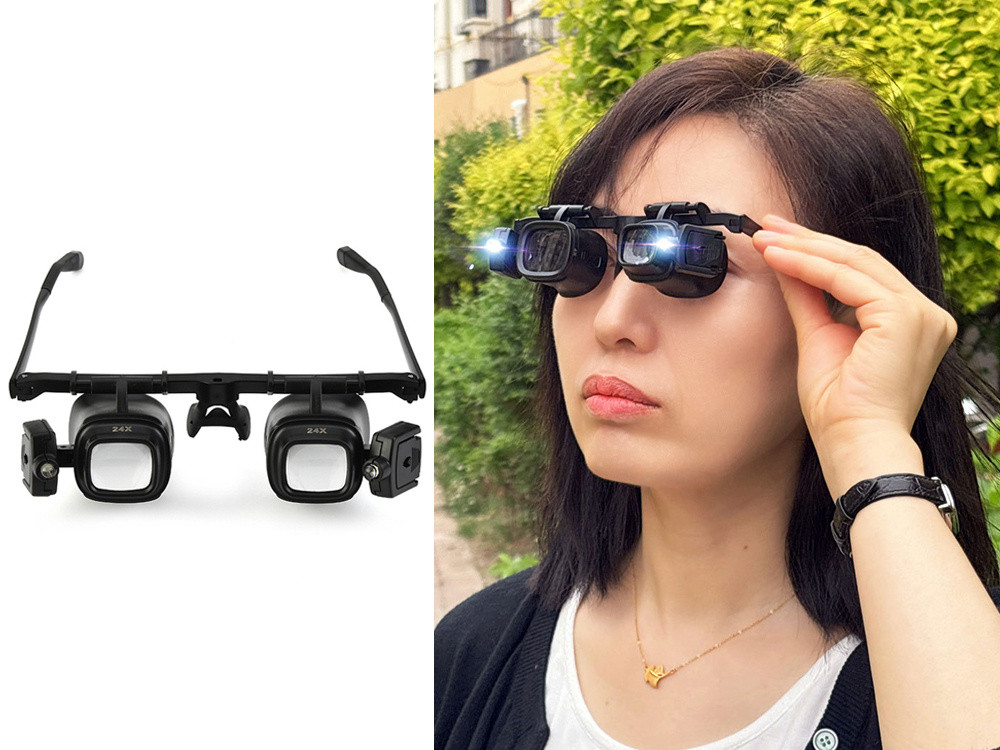 Egy 2x–24x nagyítású LED-es nagyítós szemüveg biztosítja a legjobb láthatóságot.
