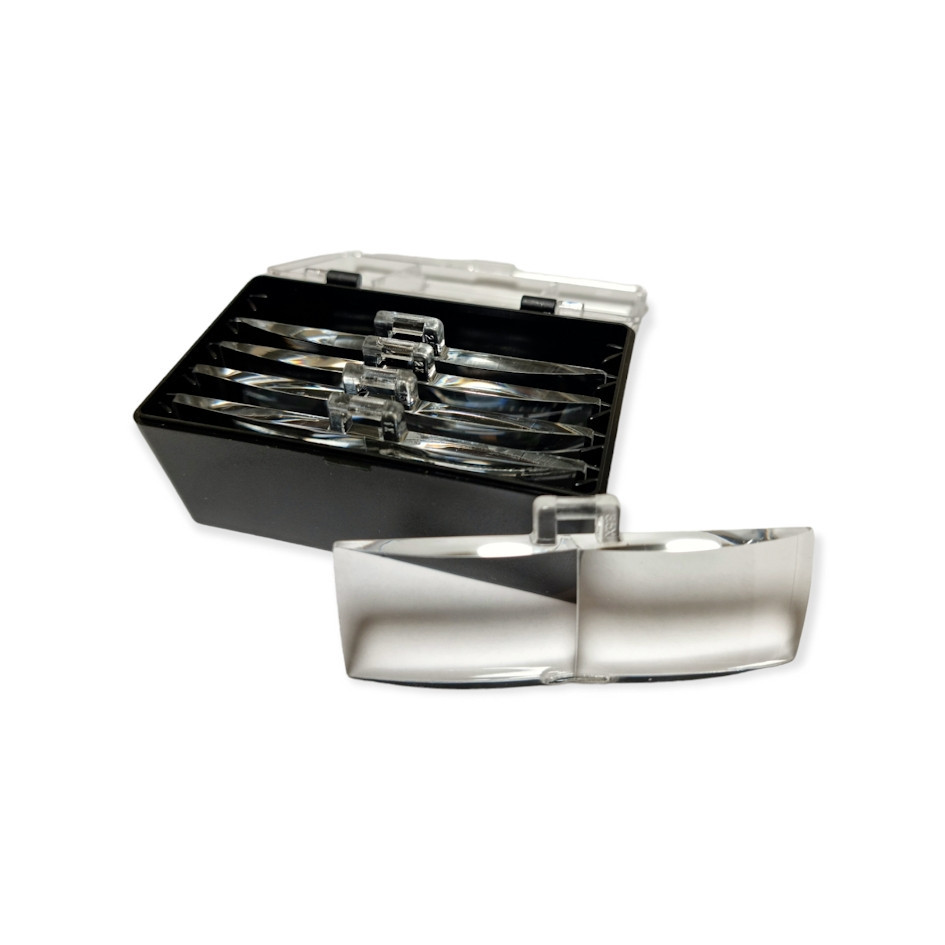 Speciálisan kialakított nagyító lencséi1,0 x, 1,5, 2,0, 2,5, és 3,5 szoros nagyítást is lehetővé tesznek, a dioptriát így szemünk adottsága és a procedúra közelségének függvényében alakíthatja.