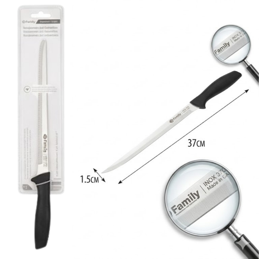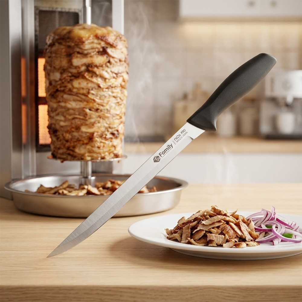 - Extra Hosszú Penge: A 37 cm-es méret lehetővé teszi, hogy a legnagyobb sonkákat vagy gyros-tornyokat is kényelmesen szeleteld.