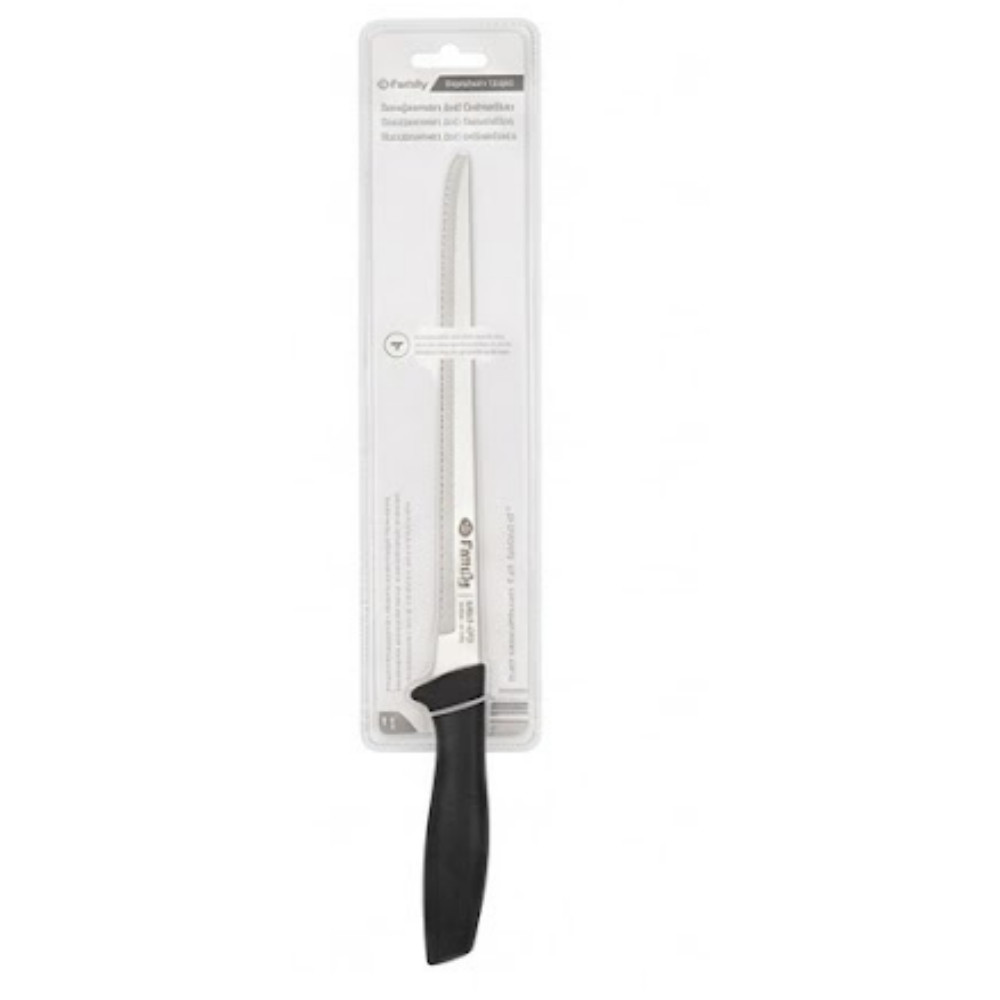 Ez a kés a mérete és a kialakítása miatt a konyha egyik legimpozánsabb darabja. Nem csak húsokhoz, de akár nagy méretű piskóták vízszintes elvágásához is remekül használható.